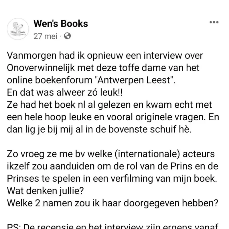“Onoverwinnelijk” is het persoonlijke verhaal van Wendy Van den Heuvel, neergeschreven in de vorm van een erotisch sprookje. Wendy werd het slachtoffer van erotische catfishing door twee collega’s, die stiekem in haar gsm gekeken hadden en via een site een nepprofiel aangemaakt hadden om intieme foto’s en informatie van haar te verkrijgen. Ik sprak met deze goedlachse vrouw, enkele maanden na het verschijnen van haar boek.